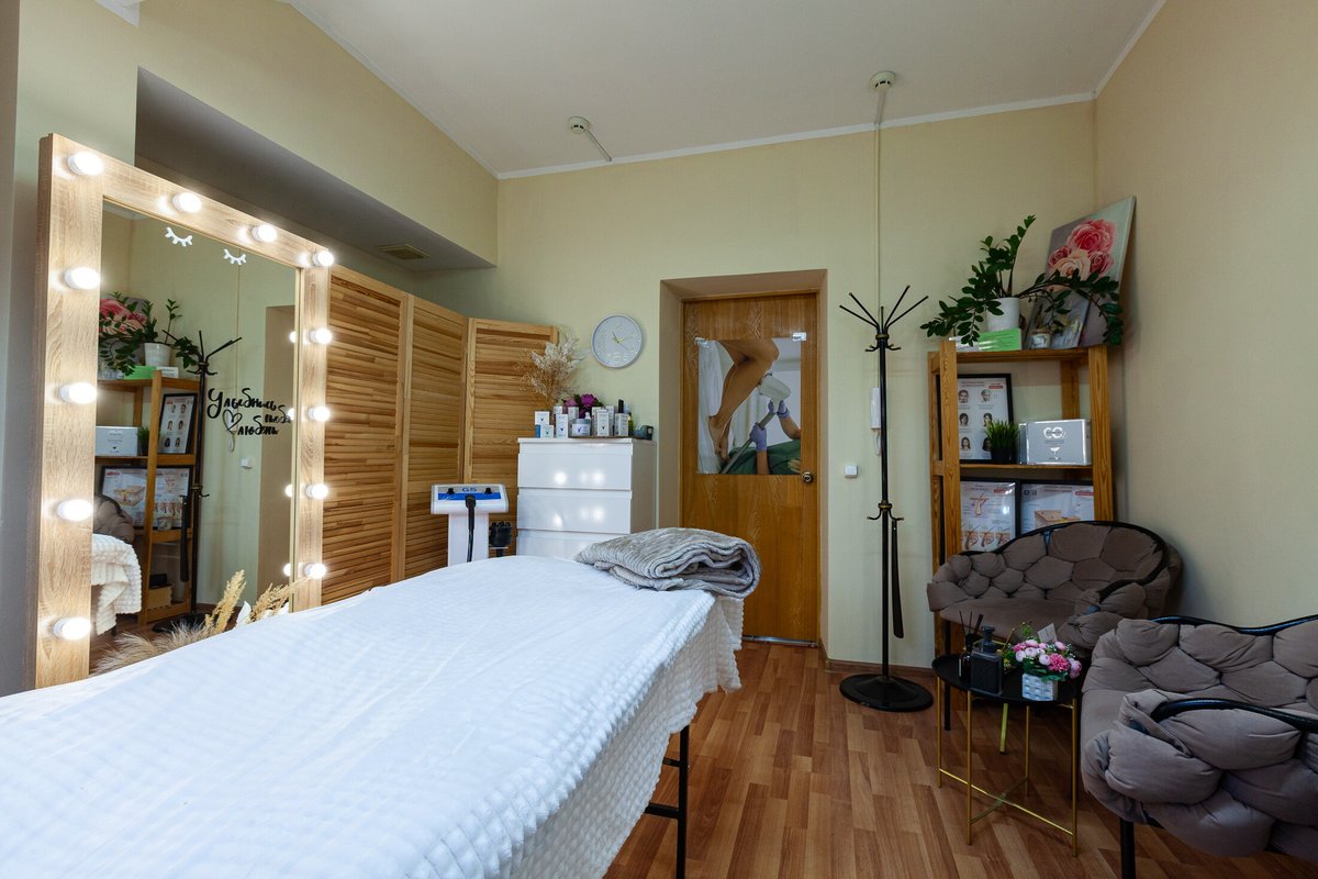Также к услугам наших гостей массаж лица, пилинг, массаж тела при помощи вакуума, коррекция формы бровей, окрашивание ресниц.